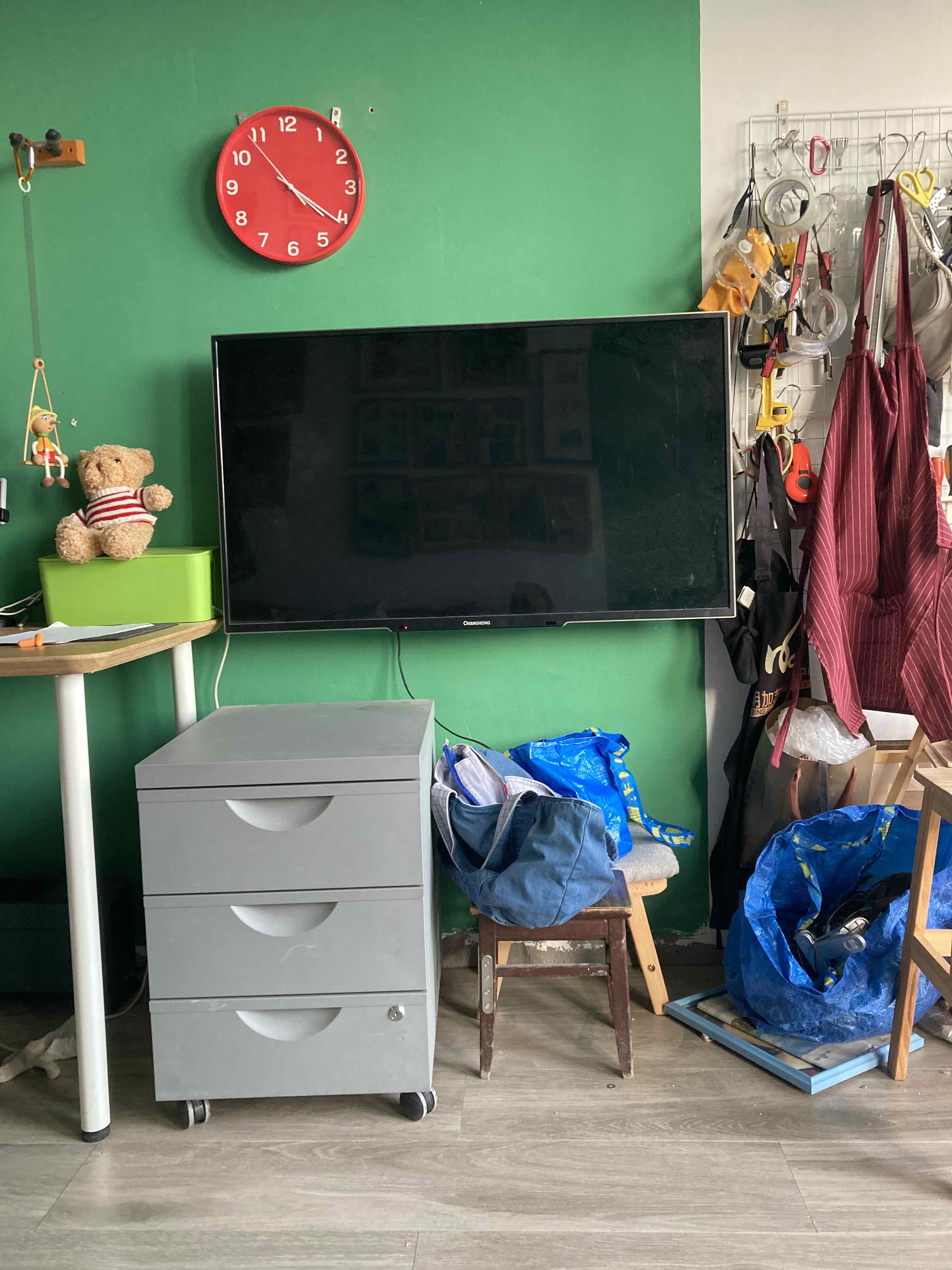 回房间又把上海拉来的电视上墙安装了,对着沙发有时候可以电脑外接电视看下油管的视频,躺沙发看舒服些。