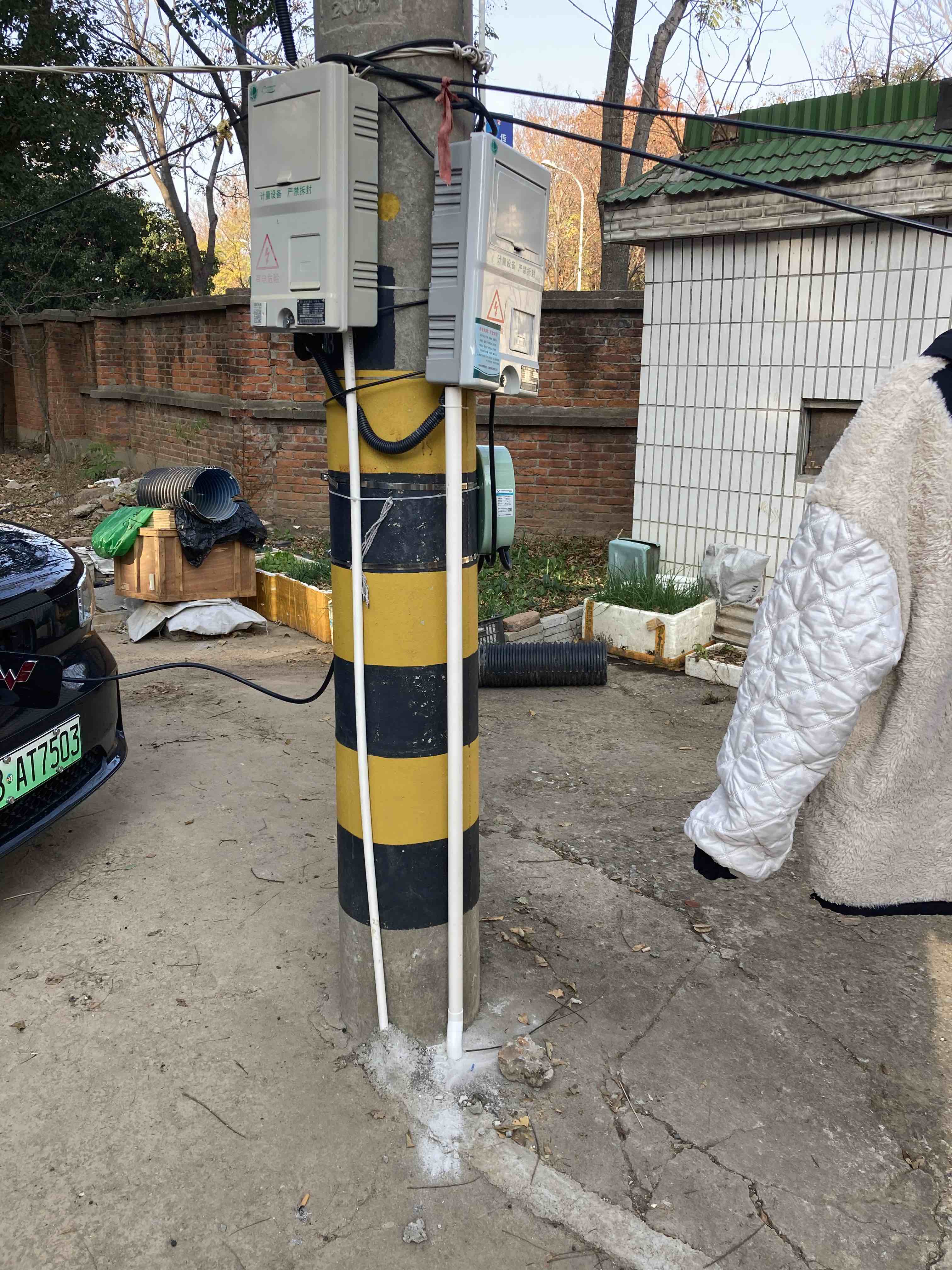 淘宝找来安装充电桩的人,下午过来把充电桩接地按好了,这点活是不多,200元有点高,不过安装的比我想的专业,穿着反光背心,乍一看还以为是供电局的人,破地面的冲击钻打穿水泥地,入地半米,见到土,然后接地线套护管,测量接地电压值为0.01,合格,问了下原来他是专门给特斯拉安装充电桩的售后,淘宝上开的店是副业,他老婆弄的。