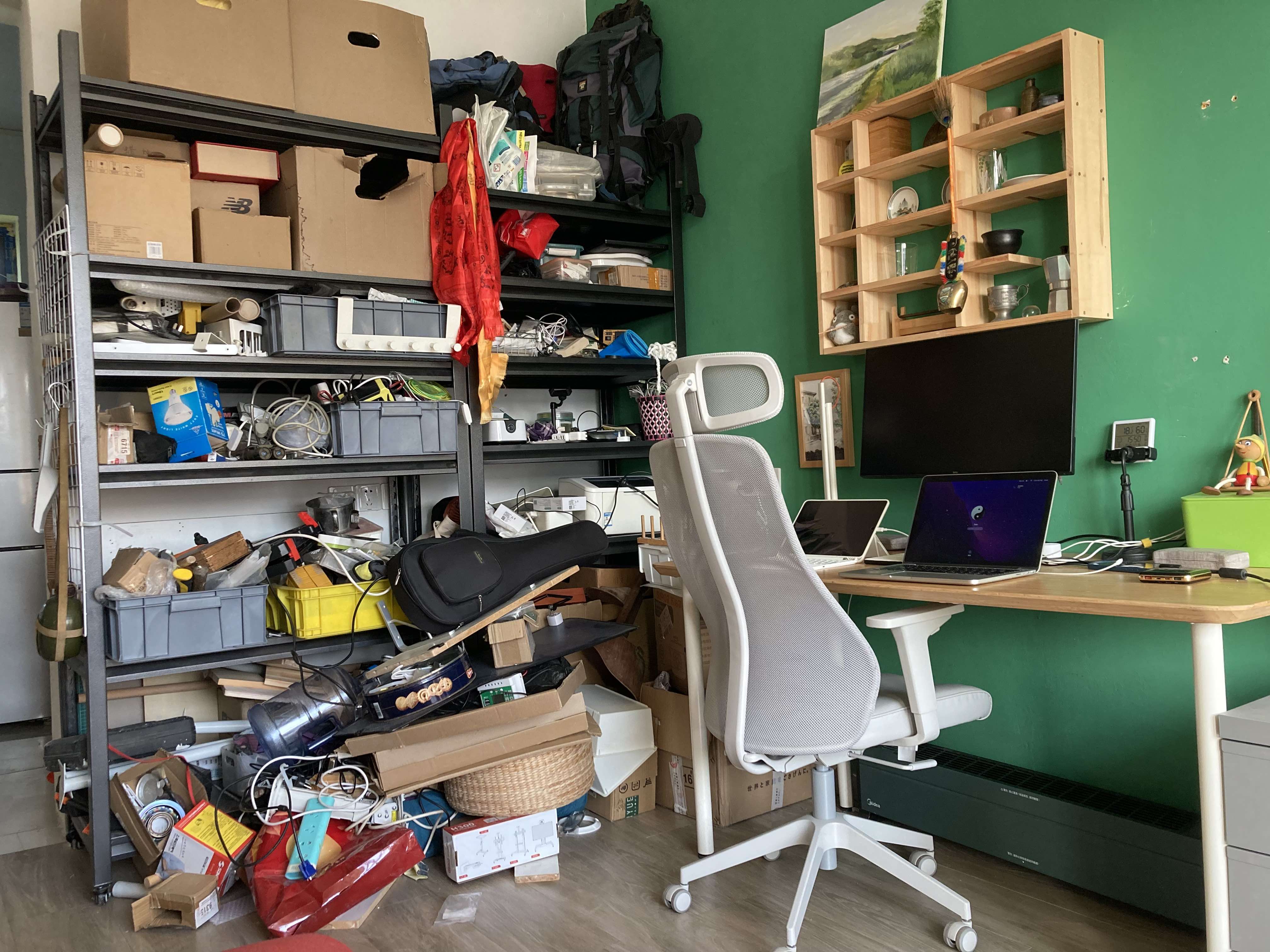 今天干了也不少事,上午把阳台书架隔板再加了一层,墙上挂满工具的网格片移到门口墙上,尤克里里移到该位置,阳台书房稍微看着整洁些,接下来要收拾的就是电脑工位边上的两个大货架,全是木工电工水工瓦工工具,平日家里物业维护用。